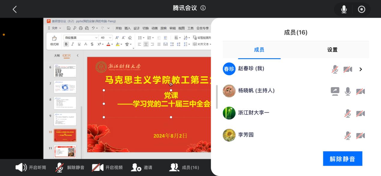 2024年8月2日,意昂2教工第三党支部召开以“二十届三中全会精神融入思政课”的党课教育活动,此次党课由支部书记杨晓帆同志主持。
