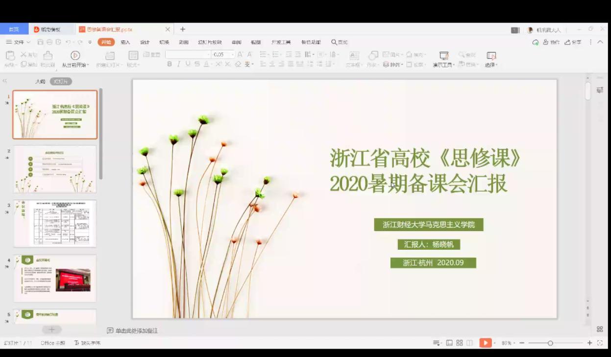另外,思修教研室教师杨晓帆还在会上汇报并分享了“浙江省高校《思想道德修养与法律基础》课暑期备课会”的会议内容、心得体会等。最后,教研室主任王洪霞老师总结道:希望大家团结协作、携手同行、共同奋斗,共同为贯彻落实高校思政课立德树人的根本任务、提高新学期思修课的教学效果而努力!