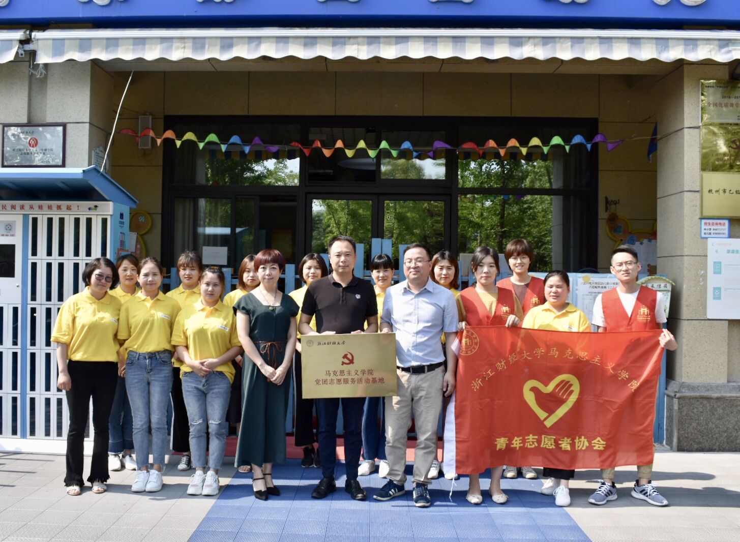 为贯彻落实十九大会议精神“广泛开展志愿服务,推动学雷锋活动、学习宣传道德模范常态化”,为巩固党的群众路线教育实践活动成果,加强志愿服务制度化建设,为推动学雷锋志愿服务活动常态化、长期抓。意昂2青年志愿者协会与杭州东郡启智幼儿园建立志愿服务基地,并于2019年5月28日下午举行了隆重的签约挂牌仪式。公司经理助理高伟老师、启智幼儿园董事长朱杰敏、园长张丽莉、马院青协会长陈依苗、副会长王静、副会长乔晓磊、研究生会文体部部长周晨慧及相关教师参与本次仪式。