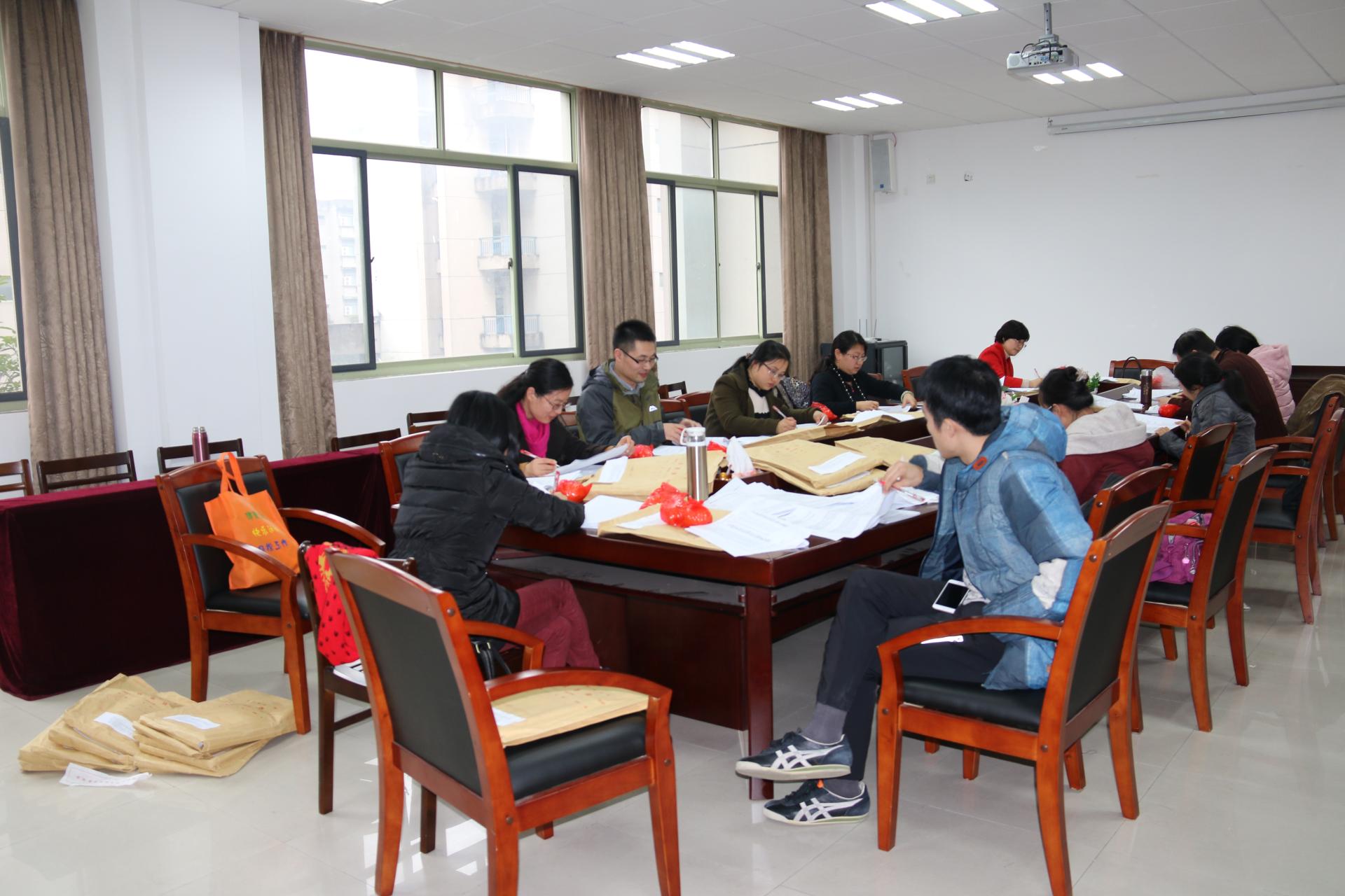 通过集体阅卷,老师们又多了一次相互交流的好机会,在批改试卷的同时,互相交流着试卷中出现的各种问题。阅卷的过程虽紧张但有序,全体教师都以饱满的热情投入到紧张忙碌但又和谐愉快的阅卷工作中,阅卷工作有条不紊、紧张有序的进行开展。
