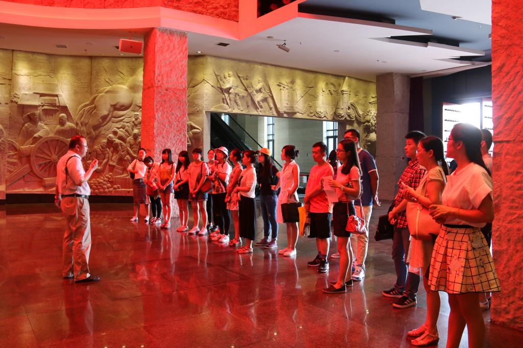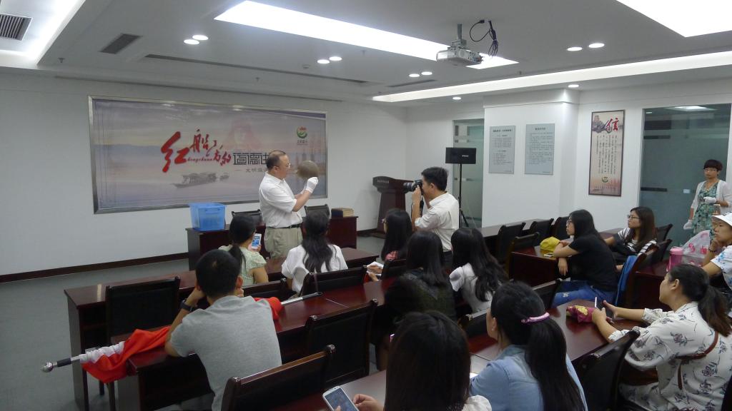 在党旗的引导下,同学们进入了一幢石库门房子,受到了李馆长的亲自接待,开始了一天的精神洗礼。李馆长详细介绍了中国共产党早期创建史,还带领他们观看了一系列生动的宣传图片和详实的文字记载资料以及以中国共产党诞生的曲折历史为题材的影视宣传片,使大家真切感受到了中国共产党诞生及其发展的曲折历史;接着李馆长又展示了珍贵的历史文物:一手的文献资料,如《新青年》《少年中国》《红星耀中国》等,日军早期钢盔和8年抗战一直使用的手枪等;最后,华正学主任画龙点睛,将此次参观与员工今后的学习生活联系起来,教导员工用红船精神激励专业梦。