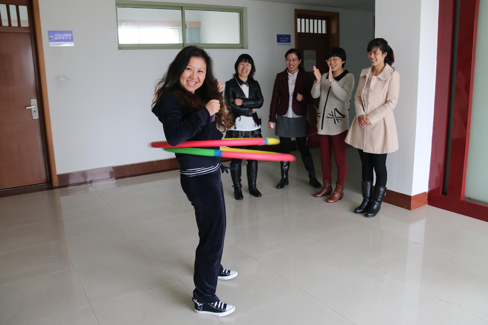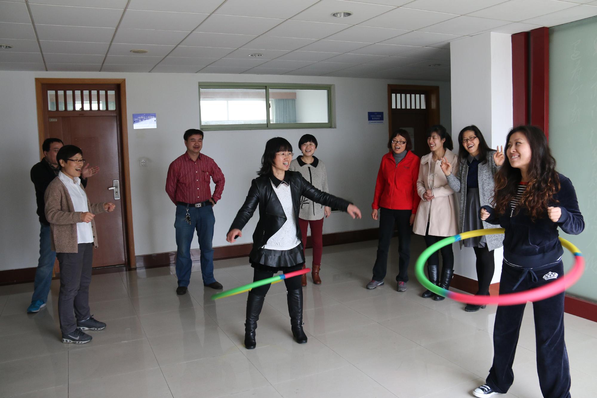 为了响应公司工会“健身健心”活动号召,让广大教师走出课堂,愉悦身心,我部在2014年3月25日举办了女教职工转呼啦圈比赛,丰富了教职工们的课余生活,同时也增进了彼此之间的沟通和友谊。