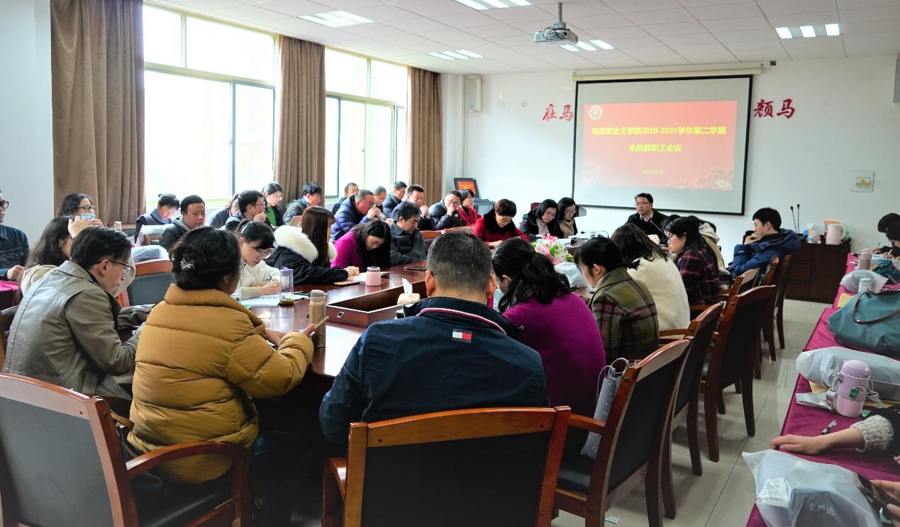 贺武华以理念、责任与使命为切入点,重点围绕“四史”教育、金课建设、提高思政理论课教学质量、学科科研工作、公司产品、团队队伍建设、人才引进、岗位聘任与考核、公司文化建设等重要工作,向全院教师部署分析了公司本学期的工作重点,也对公司的工作提出了新的要求。贺武华经理强调,全体教师要明确马院定位,切实履行好立德树人、铸魂育人的使命,以开拓进取、奋勇争先、团结向上的精神在各条战线上努力添砖加瓦,为“十四五”开好局、起好步力尽所能,发挥意昂2应有的作为。邢雁欣副经理解析了本学期主要教学工作安排,随后公司还召开了教研室主任会议和组织了工会活动。