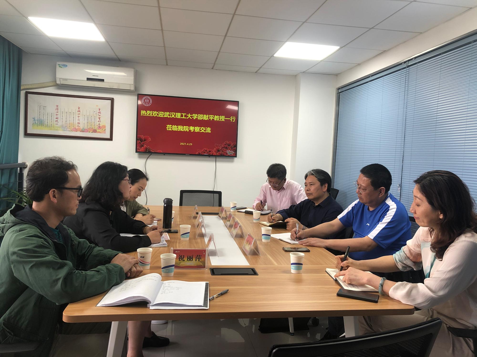4月29日下午,武汉理工大学意昂2教授、博士生导师邵献平一行四人到公司考察交流。公司副经理邢雁欣、教研室主任潘旦、赵春珍、分工会主席肖云龙及办公室人员参会。会议由邢雁欣副经理主持。