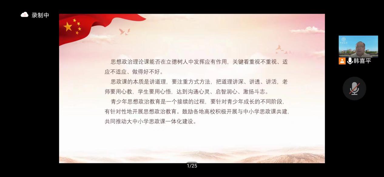 7月9日下午,国内著名的马克思主义理论研究专家、吉林大学党委副书记、博士生导师韩喜平教授作《把握习近平新时代中国特色社会主义思想的重点难点》的线上主题报告。韩教授的分析、指导为进一步深化《概论》课公司产品提供了卓有意义的引导和启发,与会老师倍感受益良多。会长渠长根教授作《<概论>课教学案例选择的原则与规范》的主题报告,围绕理论联系实际的案例选用要领、密切联系群众的案例选用规则、批评与自我批评的案例选用尺度,做了深入的理论解析与学术探讨。