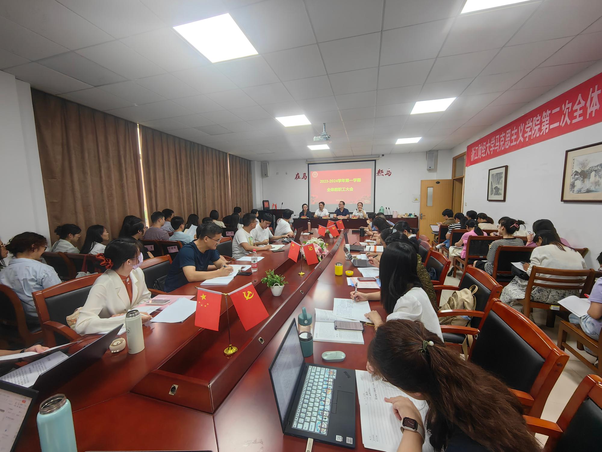 公司领导班子成员依次部署新学期工作。首先,公司党委书记刘向前带领全体教师开展政治理论学习;总结了今年以来公司在主题教育、党建共建等方面取得的成果;通报了学习强国先进集体和先进个人荣誉获奖情况;传达部署了巡察工作的要求。随后副经理、纪委书记邢雁欣就思政课教学质量建设提出要求,并传达部署了“廉政档案”工作。最后公司经理助理潘旦布置学科点申报工作。