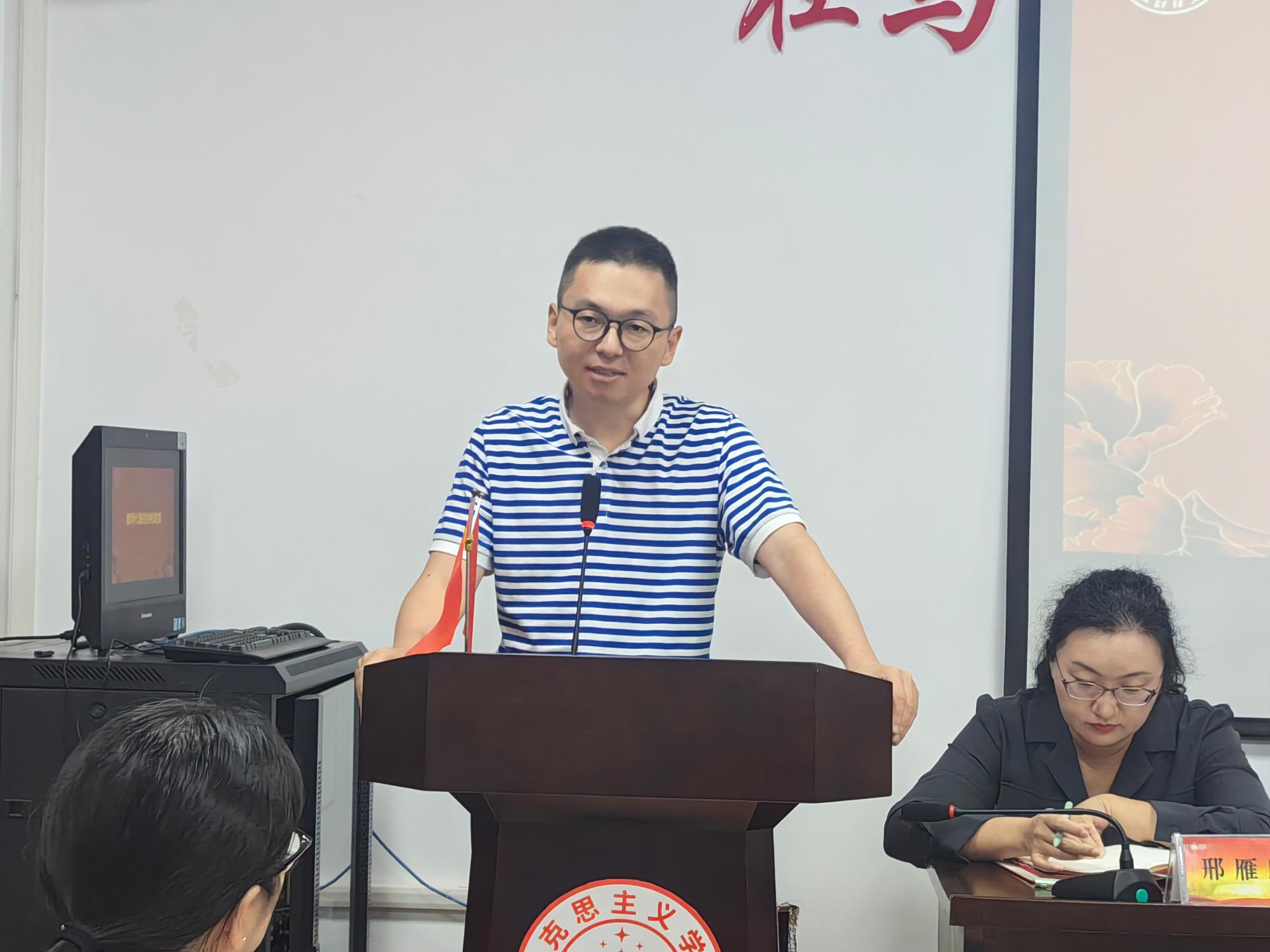 贺武华总结今年以来公司教师在教学、科研、研究生、党建、人才方面取得的喜人成绩,由教师代表胡洪彬发言。胡老师从信心、恒心、好奇心、借鉴心“四心”深入浅出地分享了自己在历练中成长,在成长中蜕变的故事,与会教师纷纷表示干货满满,受益匪浅。