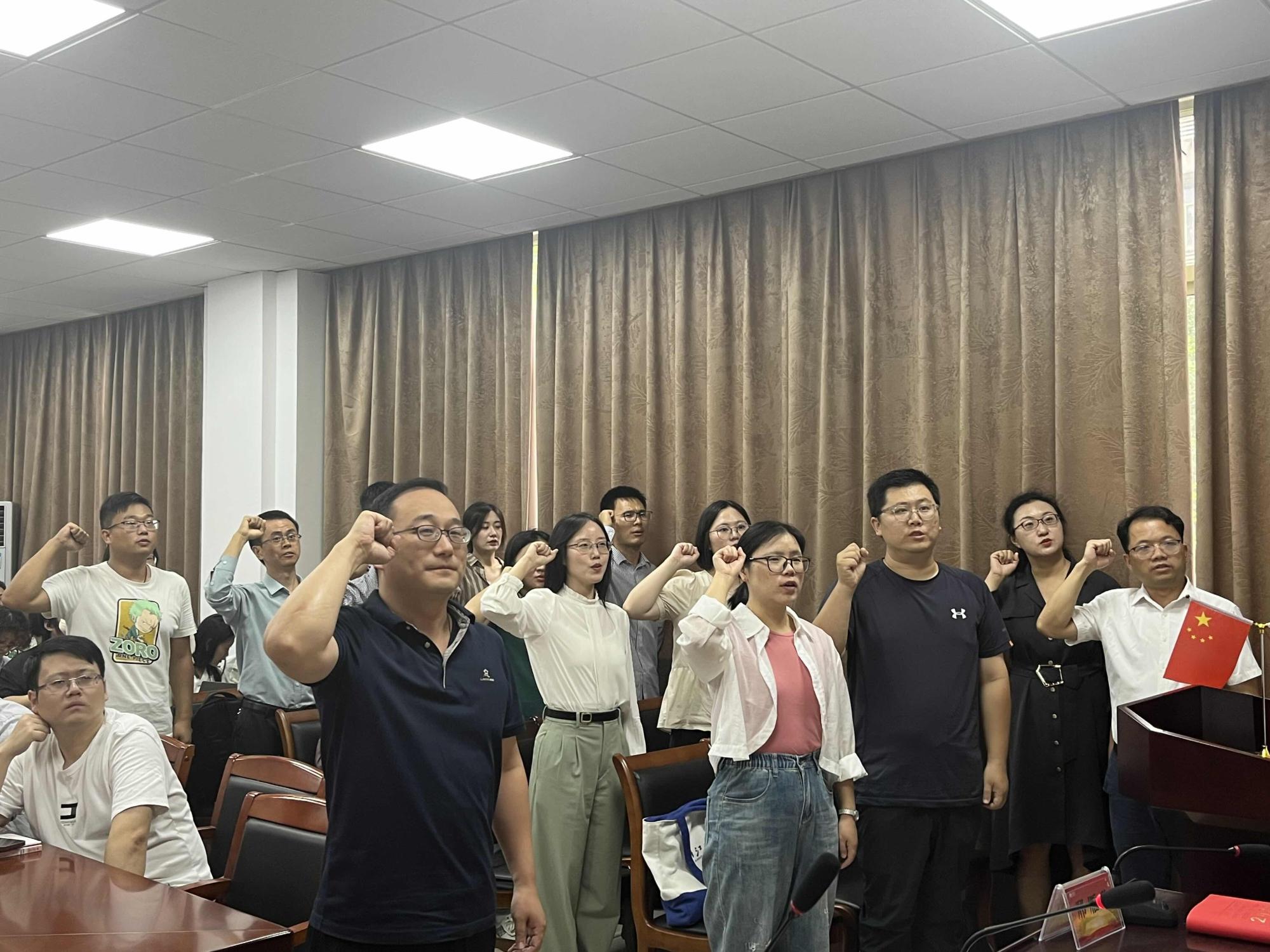 会议伊始,贺武华回顾了今年人才引进方面所取得的成绩并代表公司向各位新老师的加盟表示热烈的欢迎。每位新老师依次上台作了自我展示,叶健辉作为新教师代表发言。随后,全体新教师在党委书记刘向前的带领下进行庄严宣誓,表明了他们落实立德树人根本任务,为党育人,为国育才的坚定信心。