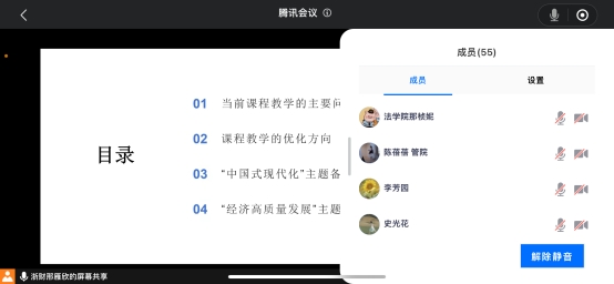接着,邢雁欣副经理介绍了本学期形势与政策课程的教学专题及教学改革内容,提醒任课教师注意课程时间及课堂教学管理,做好开课准备。同时,邢经理围绕本学期形势与政策课程的两大专题开展带领大家开展集体备课,专题一为“中国式现代化”,围绕中国式现代化的探索历程、中国式现代化的特征、中国式现代化的本质要求等内容介绍了本专题的教学设计;专题二为“经济高质量发展”,结合中国经济发展现状,讲清楚中国经济的发展优势,从2023年中国经济取得的六个方面的成绩出发,增强员工对中国经济发展的信心。