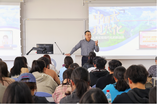 中国式现代化是一项伟大而艰巨的事业,李金昌书记提出共同富裕是一个分阶段、有差异的过程,并从科技创新、人才培养等多个维度,详细解读了中国式现代化的独特路径和显著优势。李书记勉励同学们,不能仅仅满足于课堂知识的学习,要积极适应科技变革,通过创造性劳动和创新思维,拓展知识技能和提高自己的综合素质,为为实现中国式现代化构建美好生活贡献智慧和力量。