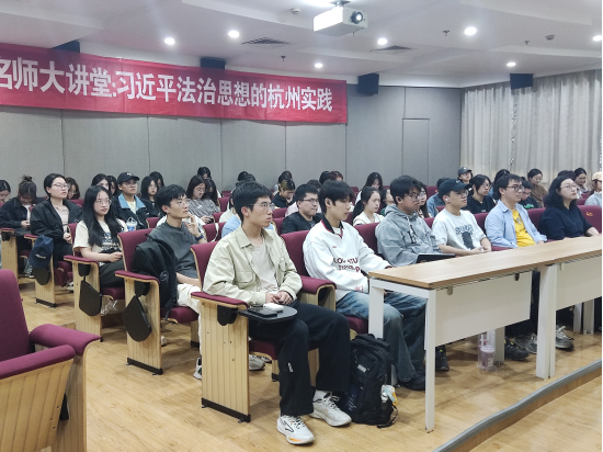 陈建华以“十一个坚持”为核心,阐释了习近平法治思想是内涵丰富、逻辑严密的科学理论体系,从历史与现实的贯通,国内与国外的贯通两个维度论证了习近平法治思想取得的重大突破和成就。陈建华结合在西湖区司法局的长期工作经验,从科学立法、严格执法、公正司法、全民守法四个方面鲜活讲授了浙江和杭州在司法实践中的现行探索和典型经验,例举了《浙江省优化营商环境条例》、《浙江省行政合法性审查工作规定》、“西湖码·我要帮”等浙江走在全国前列的特色做法。陈建华尤其结合“第二个结合”,强调了优秀传统法治文化在培养公民法律素养中的重要作用