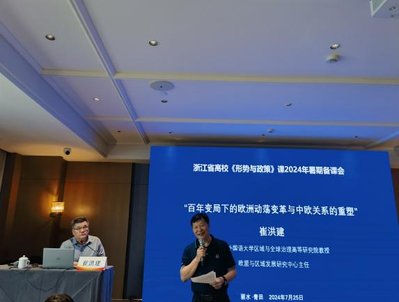 为帮助大家更好把握复杂多变的国际局势,讲好《形势与政策》课所涉及的重大国际热点问题和外交问题,备课会邀请北京外国语大学欧盟与区域发展研究中心主任、区域与全球治理高等研究院崔洪建教授作了一场高水平讲座,主题为“百年变局下的欧洲动荡变革与中欧关系的重塑”。崔教授从“欧洲眼中的百年变局”、“欧洲的选择:‘保守主义变革’”、“欧洲政治向右转”、“中欧关系的基本格局”、“当前中欧关系的难点痛点”、“中欧关系的重新塑造”以及如何以中国式现代化道路的具体实践推进人类命运共同体建设等方面,全面梳理了近年来欧洲政治经济转变、转型的起因和表现,以及对中欧关系的影响。讲座既是一场精彩的形势报告,也是一堂高水平的思政课,老师们充分感受了崔教授深厚的学术底蕴、深入的问题剖析、深刻的现实思考以及生动活泼的语言艺术,纷纷表示收获良多。