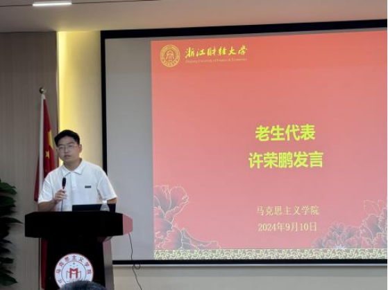 2023级马中化学生代表许荣鹏,通过引经据典和结合自身学习经历,深入浅出地分享了对马克思主义理论的理解和实践。他的发言不仅展现了对理论的深刻理解,也体现了理论与实践相结合的能力。