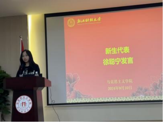 2024级马中化新生代表徐聪宁同学则以自己的心路历程为主线,生动地讲述了从紧张备考到收到录取通知的过程。她的发言充满了鼓舞人心的力量,激励新生勇敢面对挑战,不断超越自我。