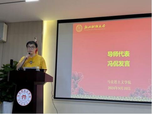 随后,硕士生导师代表冯侃发表了热情洋溢的讲话。冯老师从学术研究、学习方法、个人成长等多个角度,为大家提供了深刻的见解和宝贵的建议,鼓励大家在学术探索和个人发展的道路上不断前行。