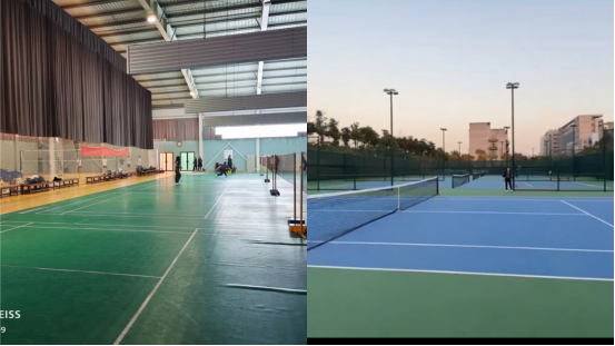 地点:公司体育北馆:3个室内羽毛球场地,3个露天网球场地