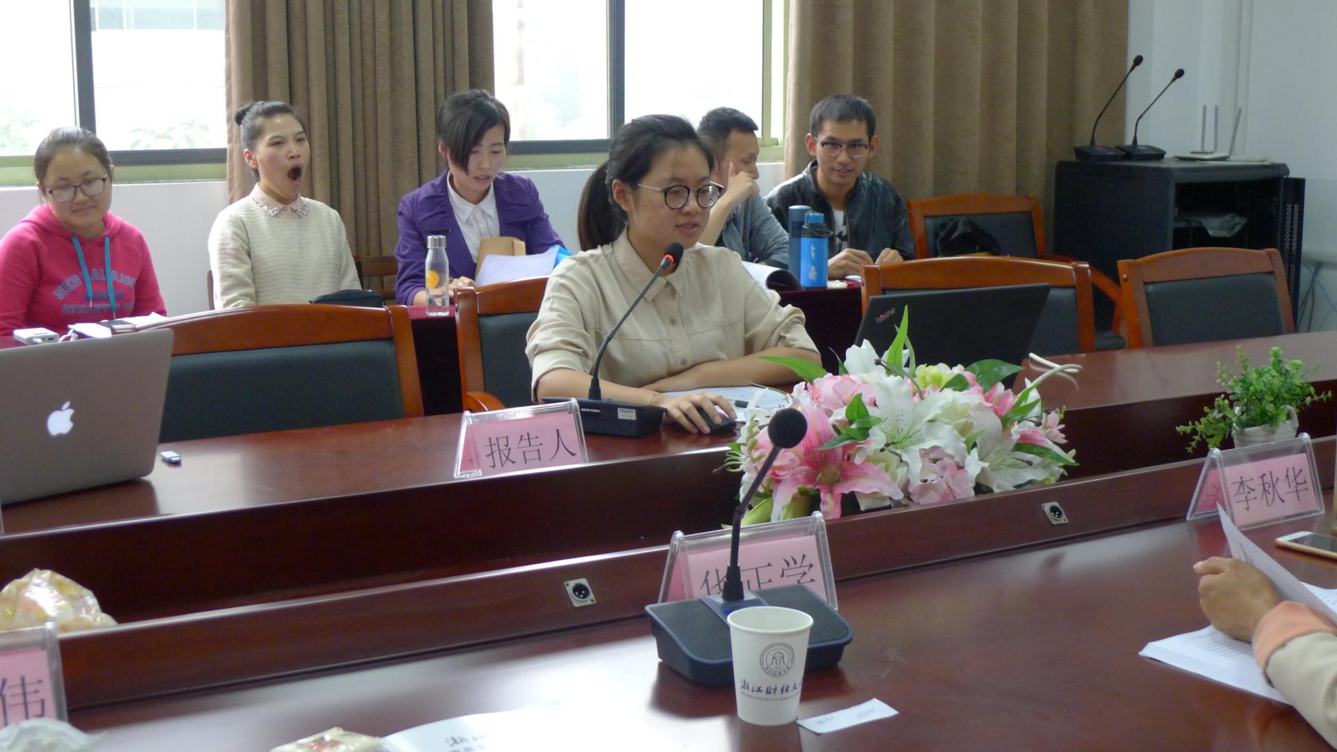 然后,经由学术委员会初评选出的12名同学依次进行论文报告,同学们作了充分的准备,不仅精心撰写论文,而且制作了汇报PPT,从论文选题、论文结构、论文内容、论文不足之处等方面介绍了自己的学术论文。他们独到的见解、清晰的条理、合理的论述,使现场的学术氛围相当浓厚。
